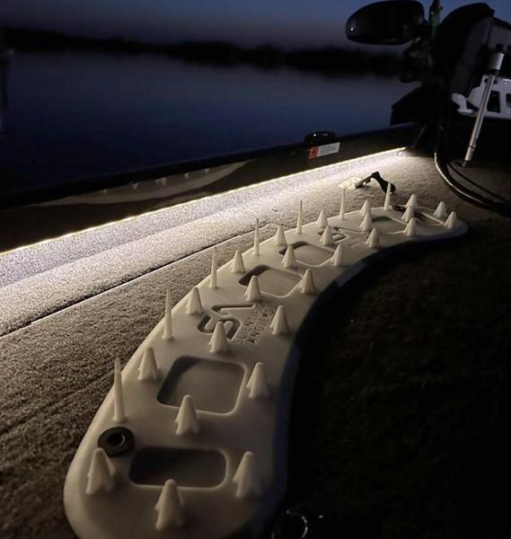 Take the hassle out of managing fly line coils on the boat deck with the Launch Pad casting mat. The silicon spikes and cones will keep the line coils separated so you’re always ready for that next big shot. For managing fly line on boat decks and flat surfaces Made from UV resistant silicone with UV proof, plastic grommets. This mat will sink if thrown overboard, grommets are provided for tethering if needed. The 37” x 6” angler centric, curved design